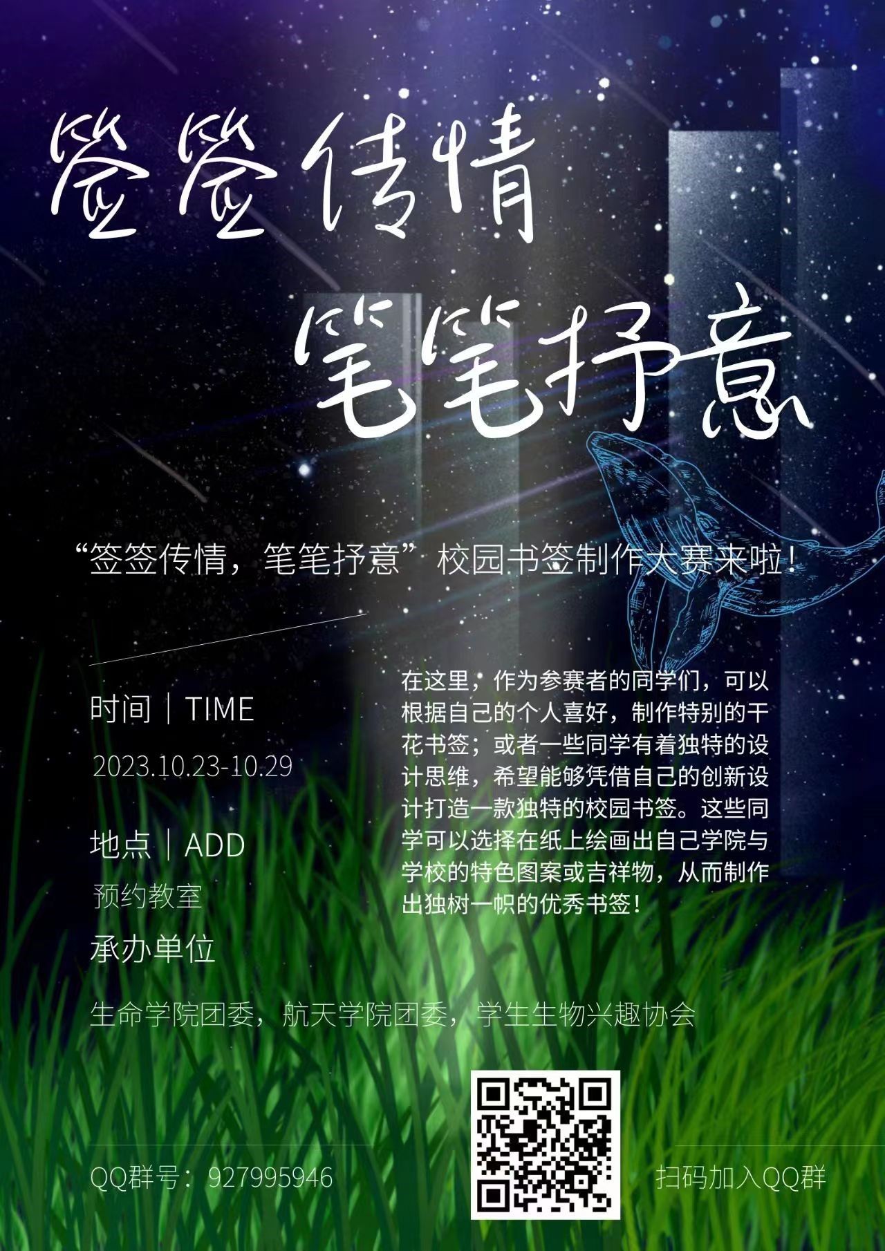活动简介:“签签传情,笔笔抒意”校园书签制作大赛来啦!在这里,作为参赛者的同学们,可以根据自己的个人喜好,制作特别的干花书签;或者一些同学有着独特的设计思维,希望能够凭借自己的创新设计打造一款独特的校园书签。这些同学可以选择在纸上绘画出自己艳照门与学校的特色图案或吉祥物,从而制作出独树一帜的优秀书签!