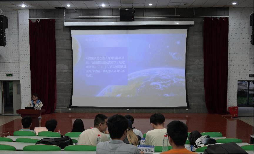 比赛采用抢答题的形式,内容由“极目楚天,共襄星汉”的中国航天日系列、“嫦娥奔月,载梦而飞”的嫦娥系列、“商业航天,大有所为”的中国商业航天事业系列、“巨人之肩,力量传承”陈士橹院士事迹系列、“夯实基础,筑梦深空”长征系列五个主题系列组成。在抢答环节中,每支队伍都竭尽全力争夺答题资格,每一位回答的同学都表现出扎实的航天知识素养和敏锐的反应能力,现场气氛紧张,难分高下。