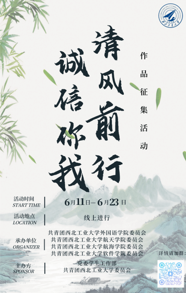 · 参与方式:参与者进入活动群,并在6月23日前将稿件投递至邮箱[email protected]中,并将文件命名为“作品名称-姓名-学号-联系方式”。