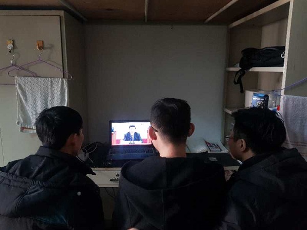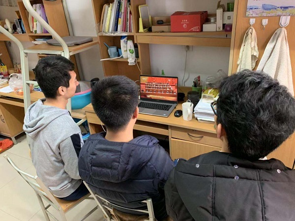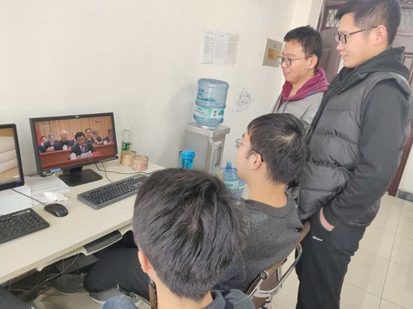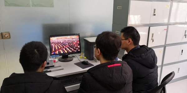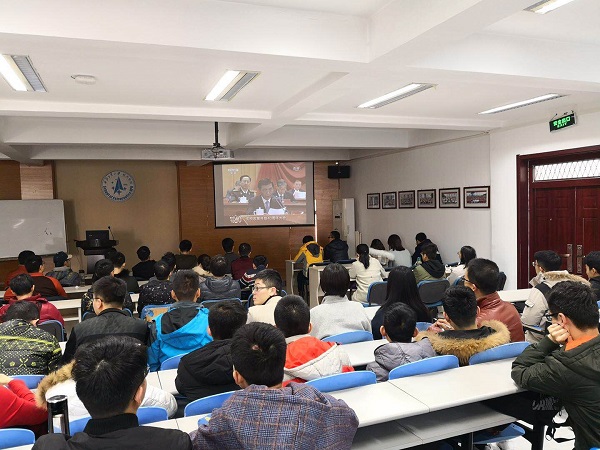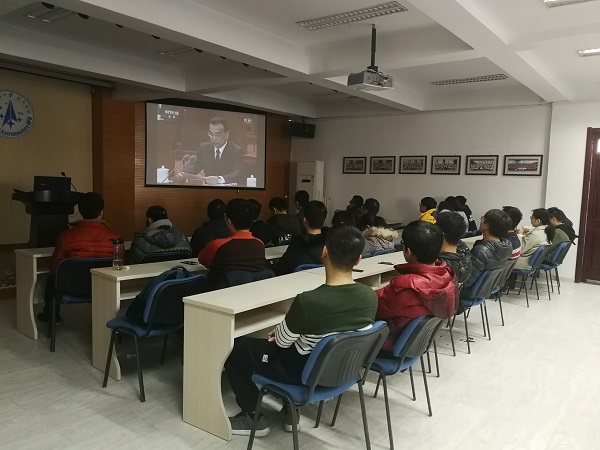 组织学生在艳照门四号楼6楼多功能教室观看大会直播。