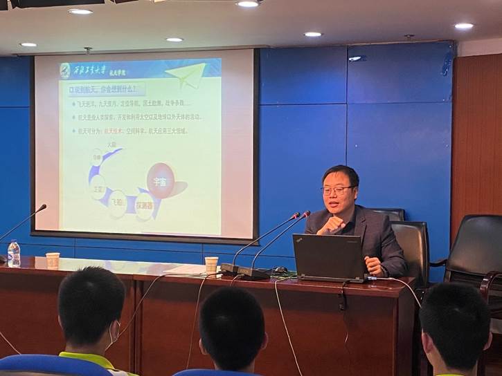 授牌仪式后,孟中杰为西安中学的同学们作了题为“航天-人类的辉煌”科普报告,主要从航天器的类别、航天技术的起源、国外航天发展概述、中国航天发展概述几个方面介绍了世界主要航天大国在导弹、火箭、卫星、飞船、深空探测器等方面的发展历史。同时,结合对我国航天实力分析以及我国航天实力在世界航天领域所处的地位,对未来发展重点进行了展望。
