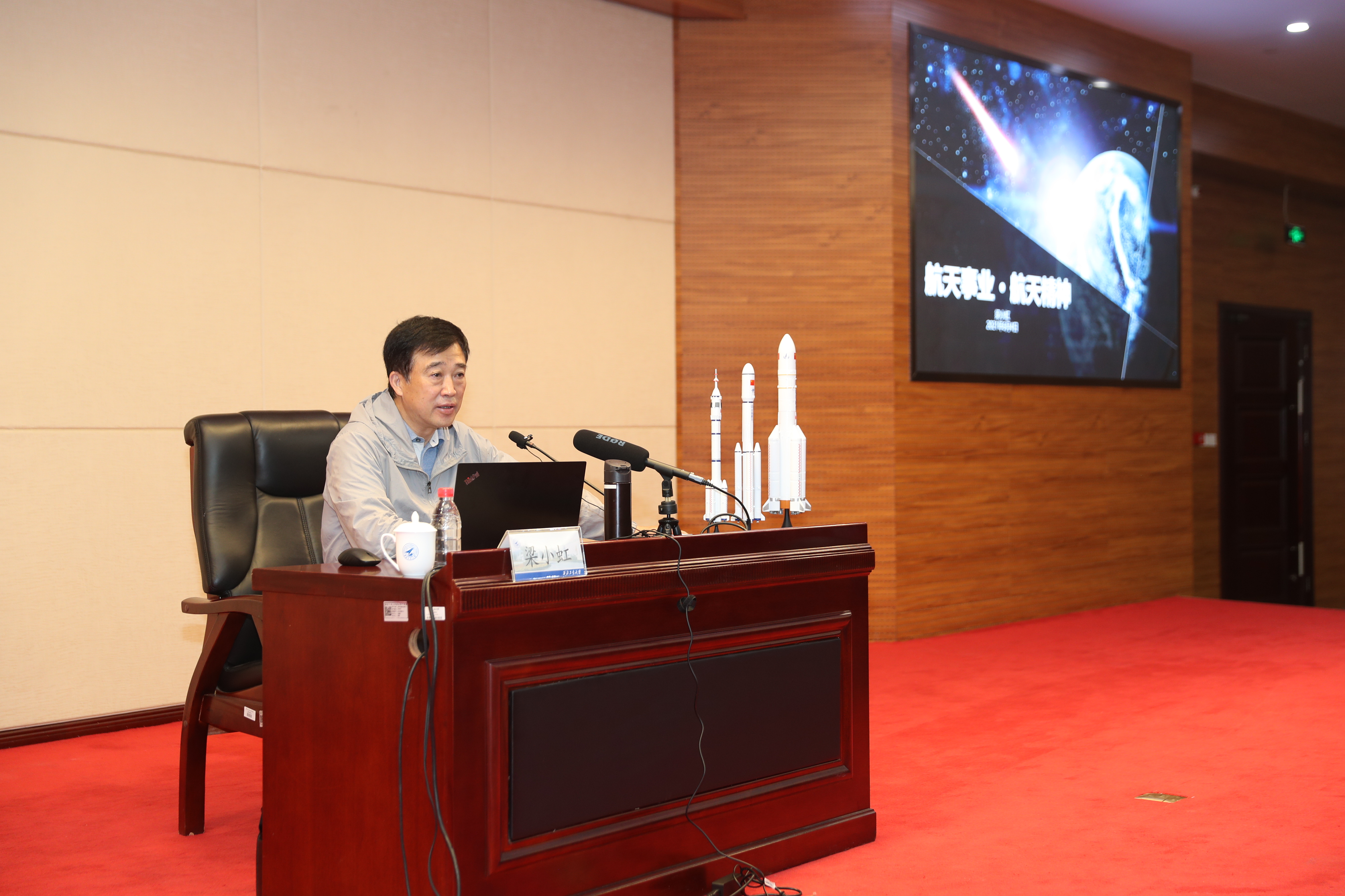 梁小虹书记从理想与未来、航天事业和航天精神、航天梦和强国梦三个部分,用生动的语言讲述了中国航天的历史沿革、创新之路,中国航天精神的基因和法宝,以及中国航天未来发展趋势。