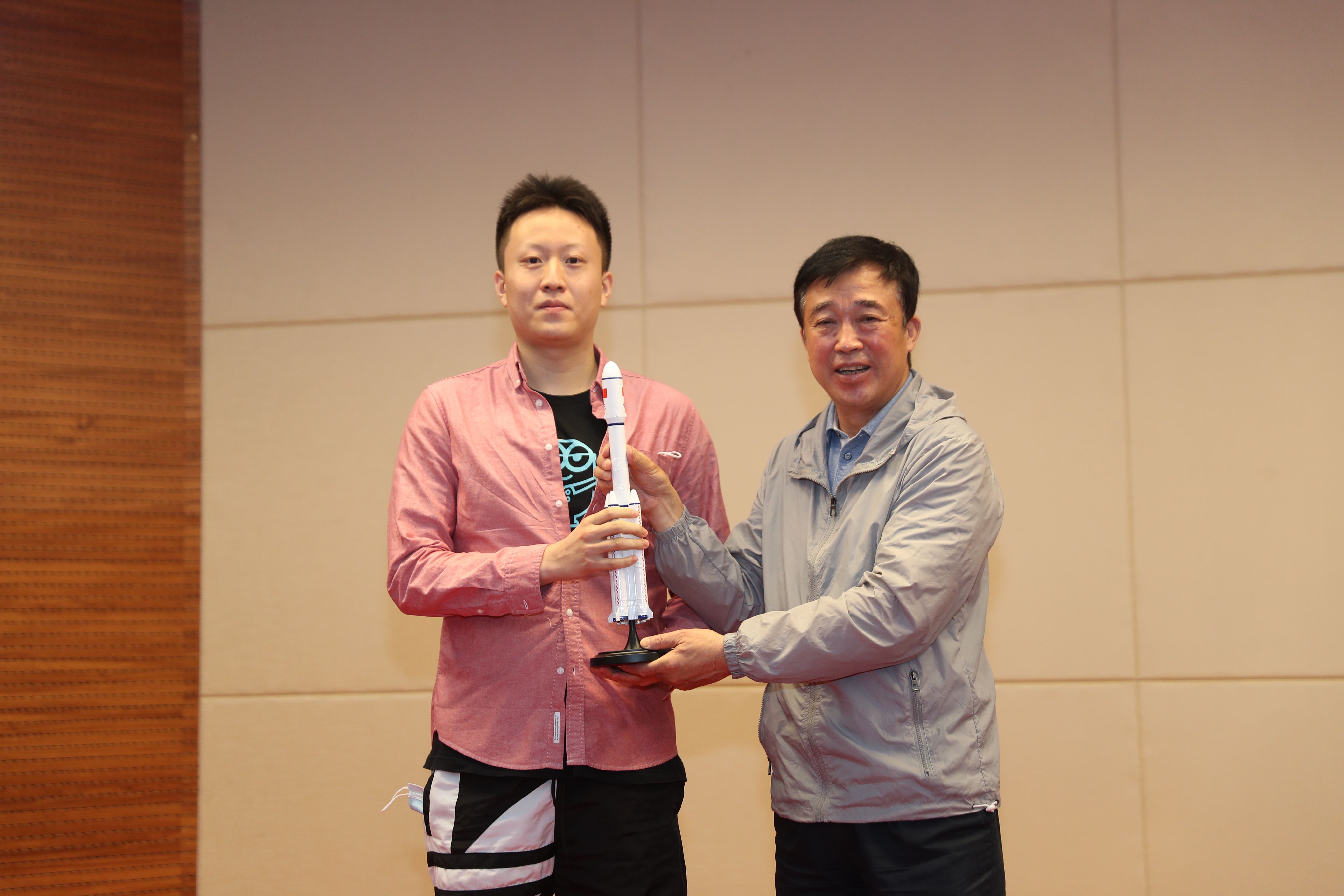 在报告会期间,梁小虹书记与现场学生进行了航天知识互动,并将多枚火箭模型及印有我国航天员签名的明信片赠送给在场学生,鼓励同学们毕业后积极投身航天事业,为中国的航天梦贡献自己的力量。他精彩风趣的语言风格赢得了与会师生阵阵掌声,现场氛围十分活跃。