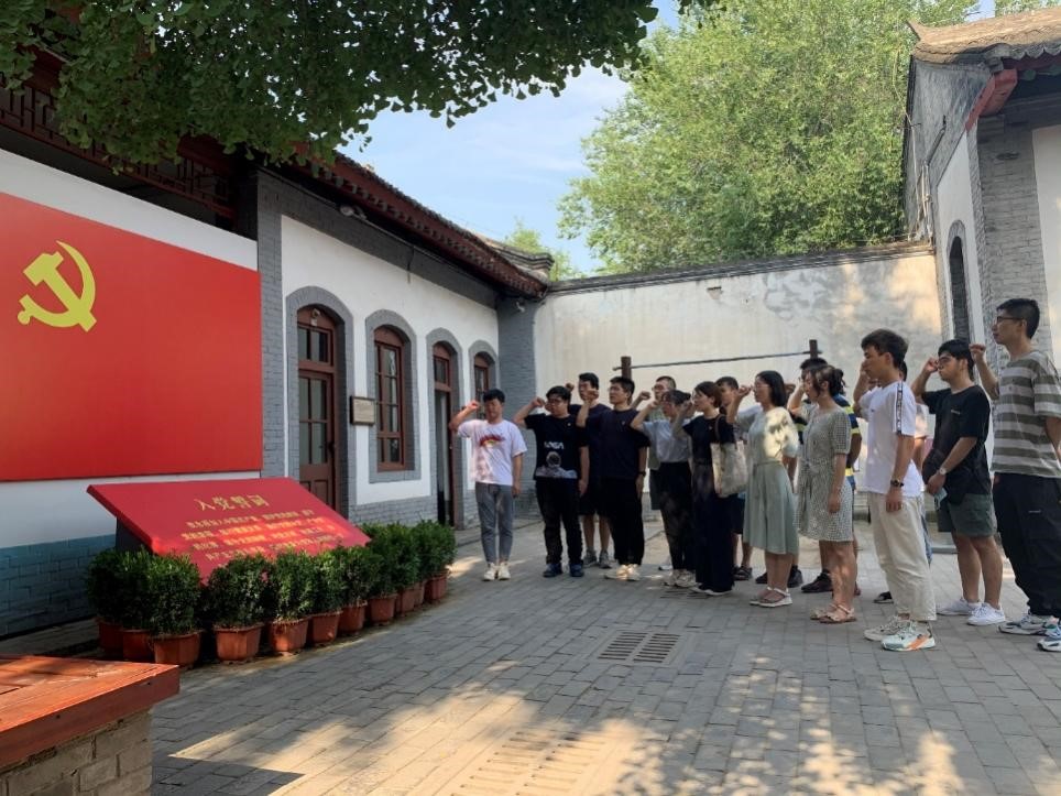 在这里,全体党员细致观看了馆内的文献资料、历史图片和珍贵文物,重温党的光辉历史,共同追忆革命先烈奋不顾身、共赴国难的艰苦奋斗历程。随着参观的不断进行,行至一号院后院,学生党支部书记高志强带领此次参观的全体党员在党旗下重温入党誓词,响亮的宣誓声展示了每一位党员的庄严承诺,彰显了为社会主义事业奋斗终身的决心。