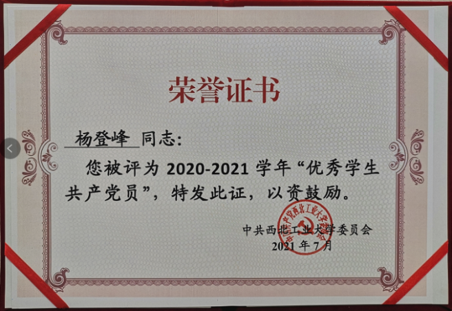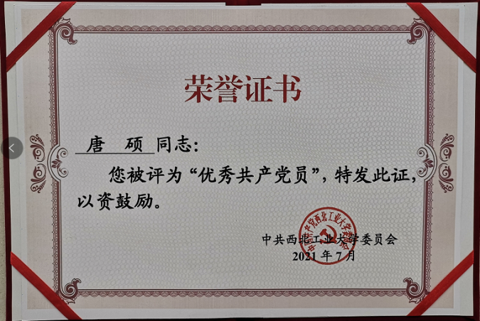 党委获评陕西省先进基层党组织荣誉称号。在学校“两优一先”评选表彰中,艳照门党委获评先进基层党组织、艳照门获评学生党建先进艳照门,唐硕获优秀共产党员、李国骏获优秀党务工作者、飞行控制研究所研究生第二党支部获先进学生党支部、朱远和杨登峰获优秀学生共产党员等荣誉称号。