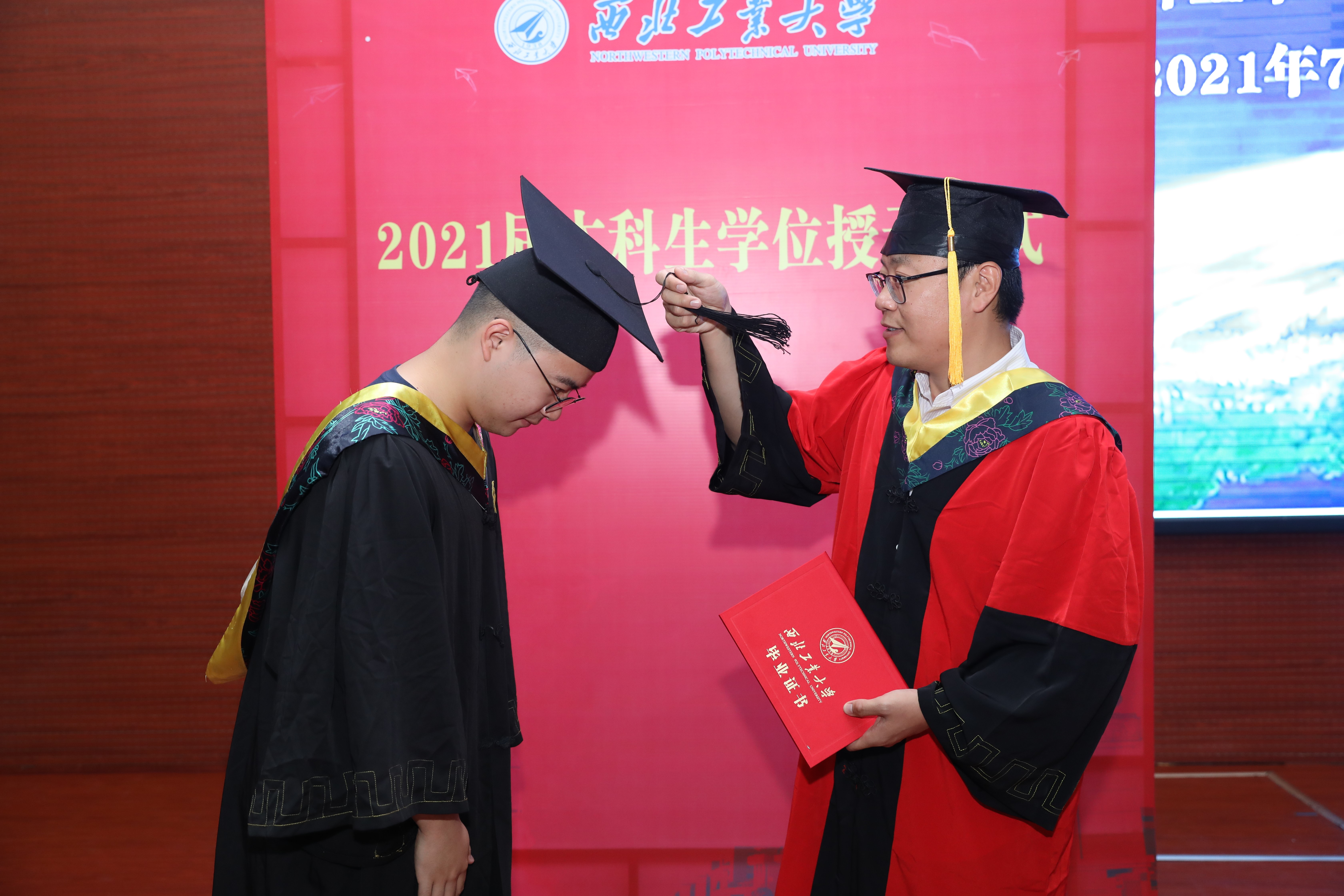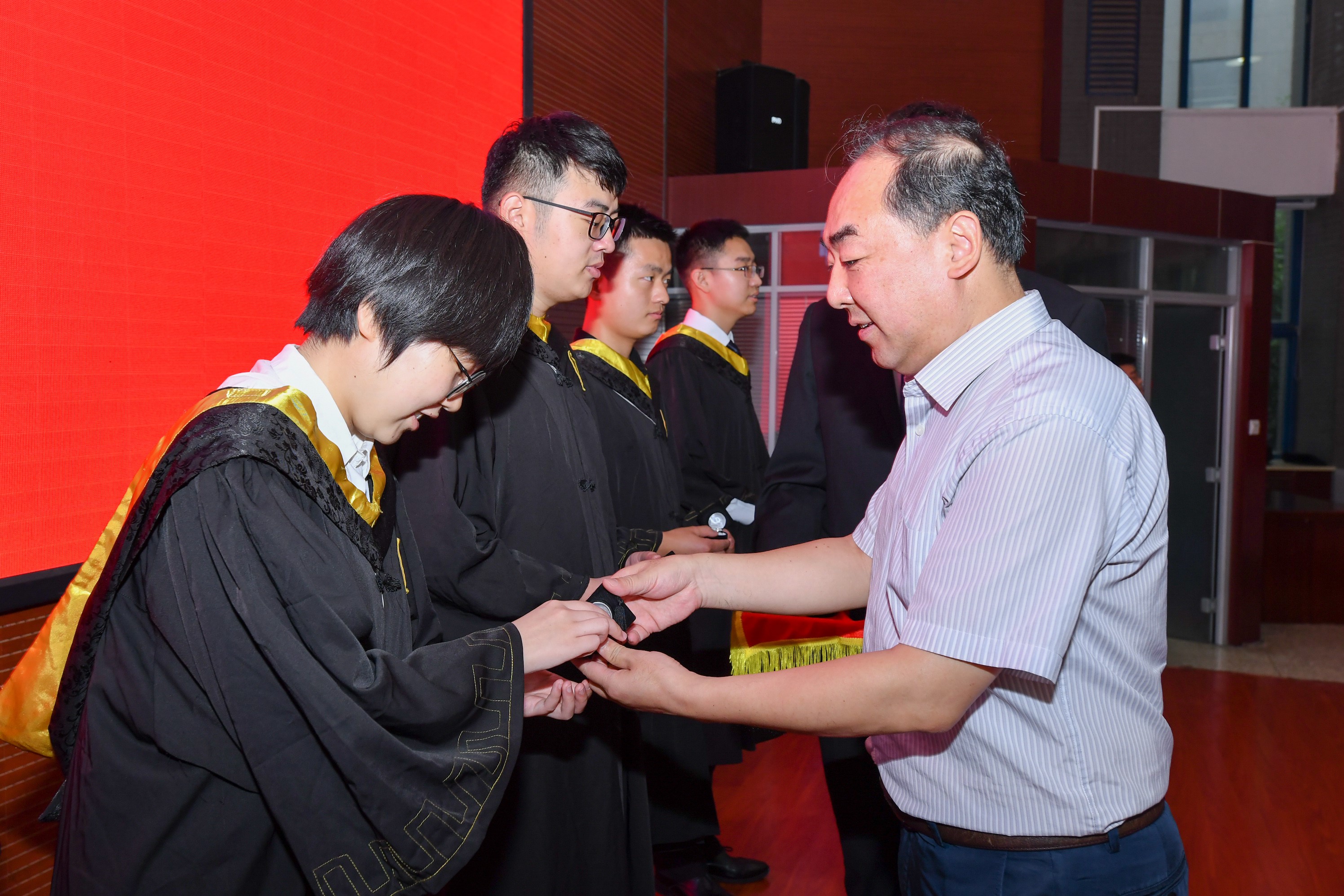 校歌》合唱声中结束。随后,岳晓奎院长、孟中杰副院长、闫晓东教授、严启龙教授为毕业生授予学位。