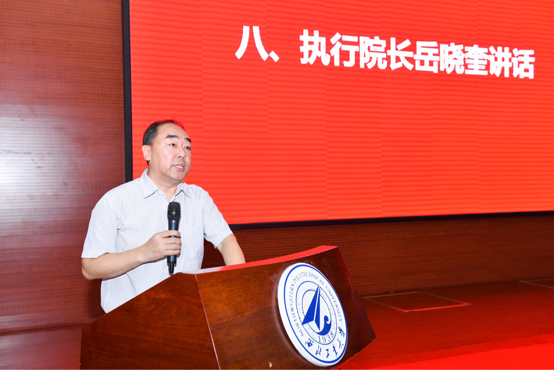 最后,执行院长岳晓奎教授发言,向圆满完成学业的同学们表示诚挚的祝贺和良好的祝愿,向一路走来为大家倾注心血的老师和家长朋友致以崇高的敬意和衷心的感谢。岳院长向即将毕业的学子们提了三点希望:一是希望同学们胸怀理想、志存高远,勇担历史使命,坚定前进信心,把个人的理想追求融入党和国家事业之中;二是希望同学们保持自信、敢为人先,传承中国航天自力更生、艰苦奋斗的志气,保持“舍我其谁”的气概和“非我莫属”的毅力,勇猛精进、敢为人先,努力成为引领未来的栋梁之才;三是希望同学们坚守定力、矢志创新,要有“干惊天动地事,做隐姓埋名人”的品格,在成长的道路上始终坚守定力,不怕失败,不惧难题,更不急于求成,以持之以恒的耐心和毅力不断前行,矢志创新。