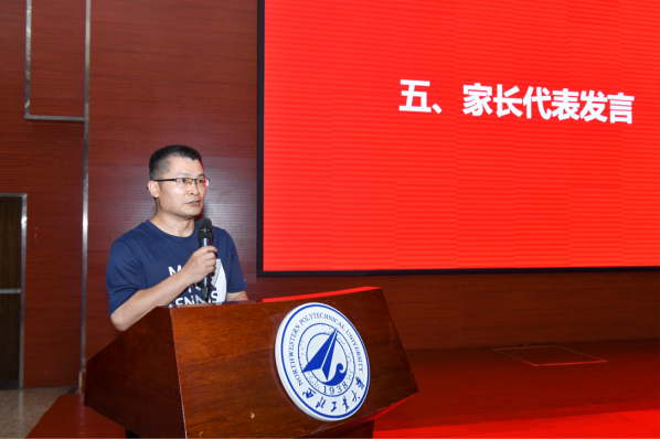 白晓萌同学家长白书鹏作为家长代表发言,他向2021届毕业生表示热烈祝贺,也向为同学们的成长倾注了爱心与热情、汗水与智慧的老师们表示了衷心感谢,他祝贺各位同学顺利毕业,祝愿大家的道路越走越宽,未来更加美好。