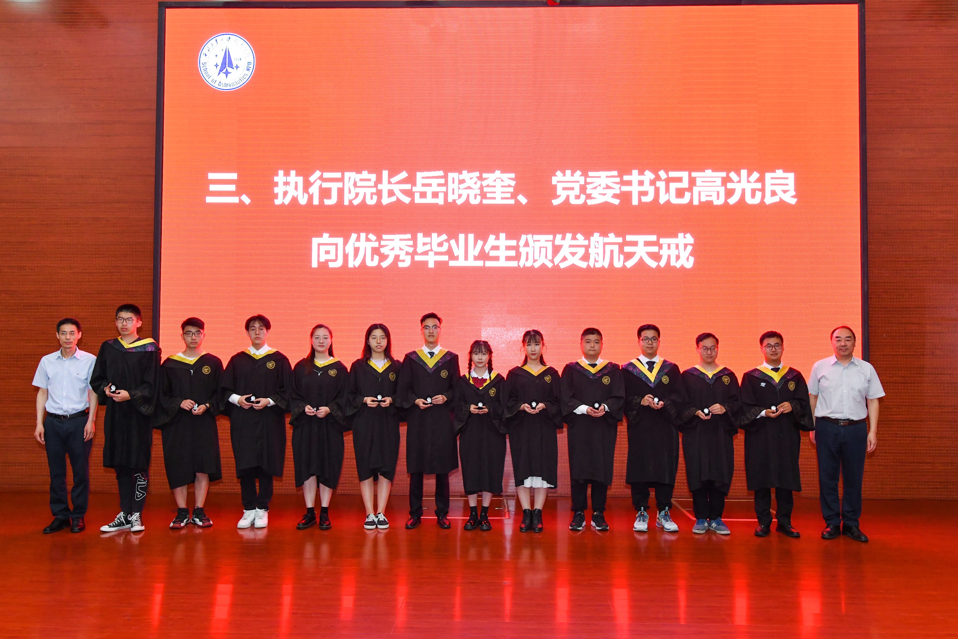 丁舒昱等36名同学获得“优秀毕业生”称号,党委书记高光良和执行院长岳晓奎为36名优秀毕业生颁发航天戒并向各位优秀毕业生送上了祝福,希望各位优秀毕业生能够在今后的学习和工作中珍惜荣誉、戒骄戒躁,为母校争光添彩,为祖国建功立业。