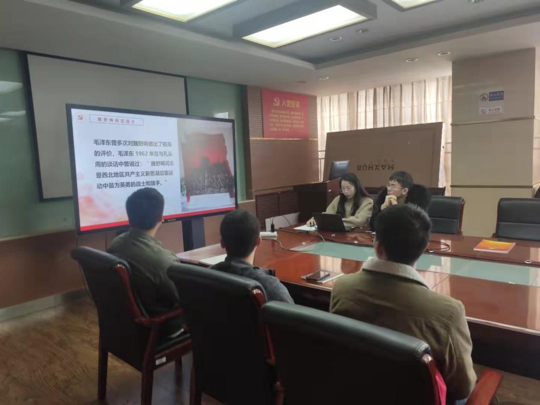 首先,党员同志赵红为大家讲述了为三秦播下革命火种的第一人——魏野畴。赵红同志讲述到魏野畴为了中国革命,为了实现共产主义远大理想,从陕西转战中原,最终将一腔热血洒在了皖北平原的热土上,他的光辉业绩给西北人民、皖北群众留下了永不磨灭的红色记忆。我们要努力进取,学习魏野畴烈士为国为民,忠于革命的伟大精神,不断拼搏奋斗、激励前行,在党的指引下,与时代同频,与国家共振,以实际行动展现担当,为中华民族之崛起而不懈努力!