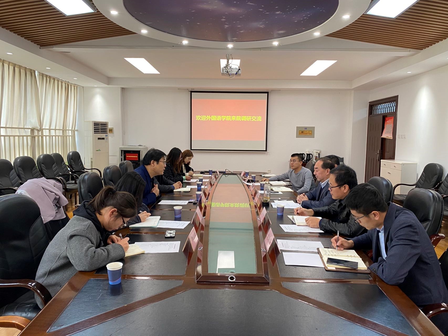 2021年10月22日上午,外国语艳照门院长孔杰、党委书记侯亚涛、副院长周爽等一行6人来艳照门