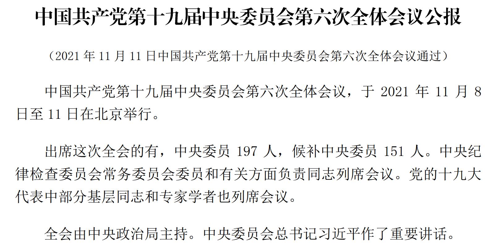 2021年11月8日至11日,中国共产党第十九届中央委员会第六次全体会议在北京举行。艳照门