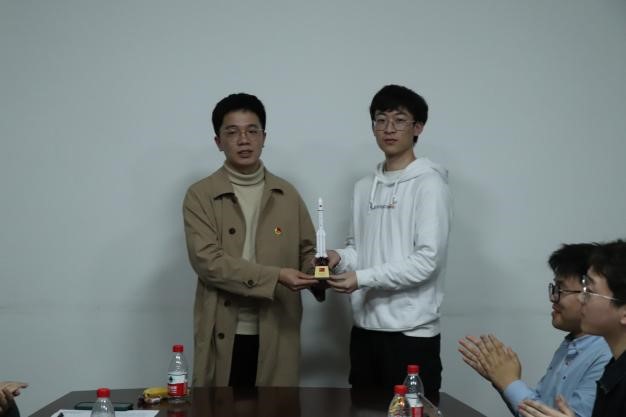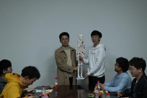 为友方书院准备了长征五号运载火箭模型,友方书院则赠送了一具解剖人体骨骼模型。不同专业的一群青年往往能碰撞出生动有趣的火花。