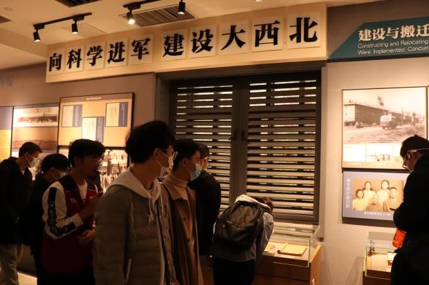 之后,学生会一行人参观了西迁精神博物馆。在参观过程中,“溯源”、“西迁”、“致远”这三个主题贯穿始终,“胸怀大局,无私奉献,弘扬传统,艰苦创业”的西迁精神令在场同学为之动容,感慨万千。习近平总书记关于西迁精神对当代师生的寄语,被制成烫金字写在博物馆大厅正中央,激励并鼓舞着每一位大学生。