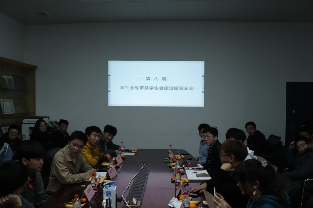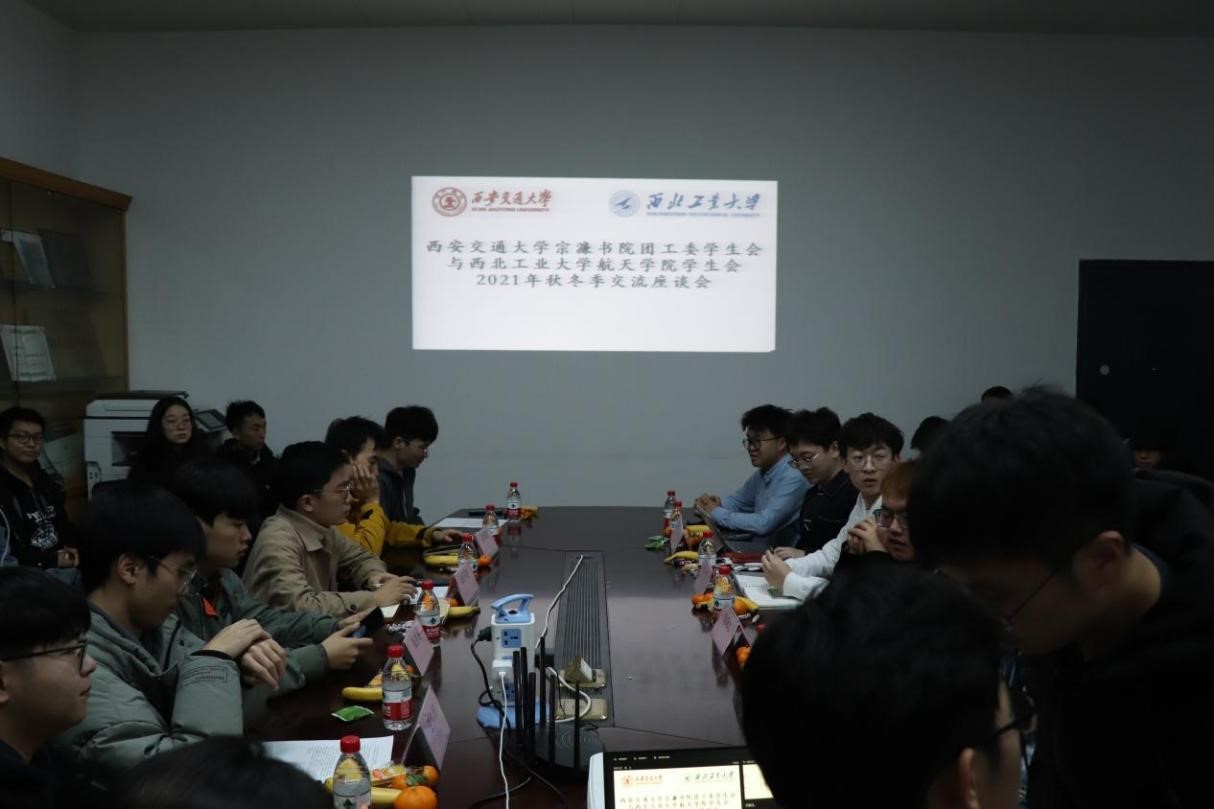 学生会干部、志愿者一行人来到西安交通大学团委中心,与西安交通大学宗濂书院团工委学生会成员进行座谈交流,会议由李振宇主持。