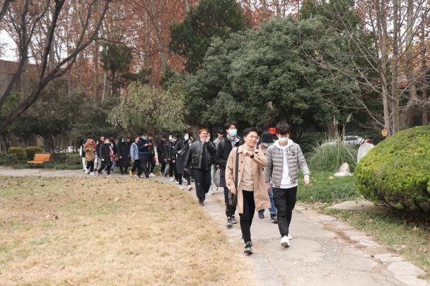 学生会代表们踏入了西安交通大学这所充满历史气息的高校。在钱学森图书馆外的四大发明广场上,两院学生会举行了简短的欢迎仪式并集体合影留念。