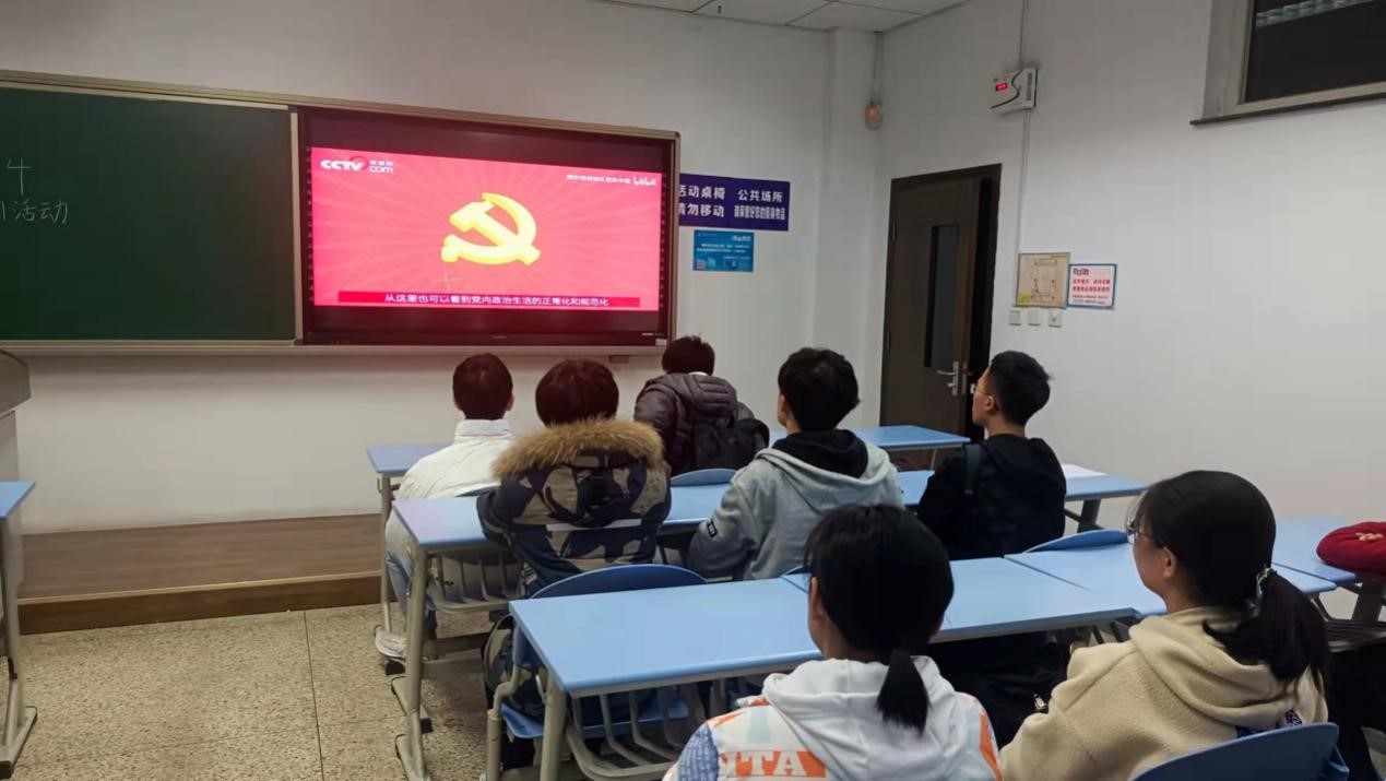 同学们共同观看十九届六中全会精神宣讲视频