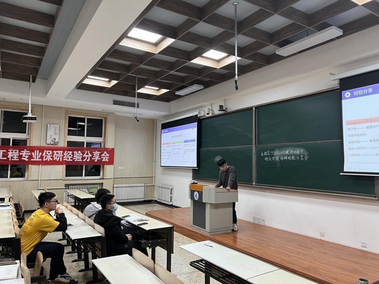 为使学生了解考研及保研信息,明确读研目的与目标,尽早做好生涯规划,12月20日,飞行器动力工程专业本科生党支部依托艳照门“百岗千人”学生党员奉献计划,面向飞行器动力工程专业同学开展了考研保研经验分享会。本次活动由4位已被研究生预录取的本科生主讲。分享会由焦佳富主持。