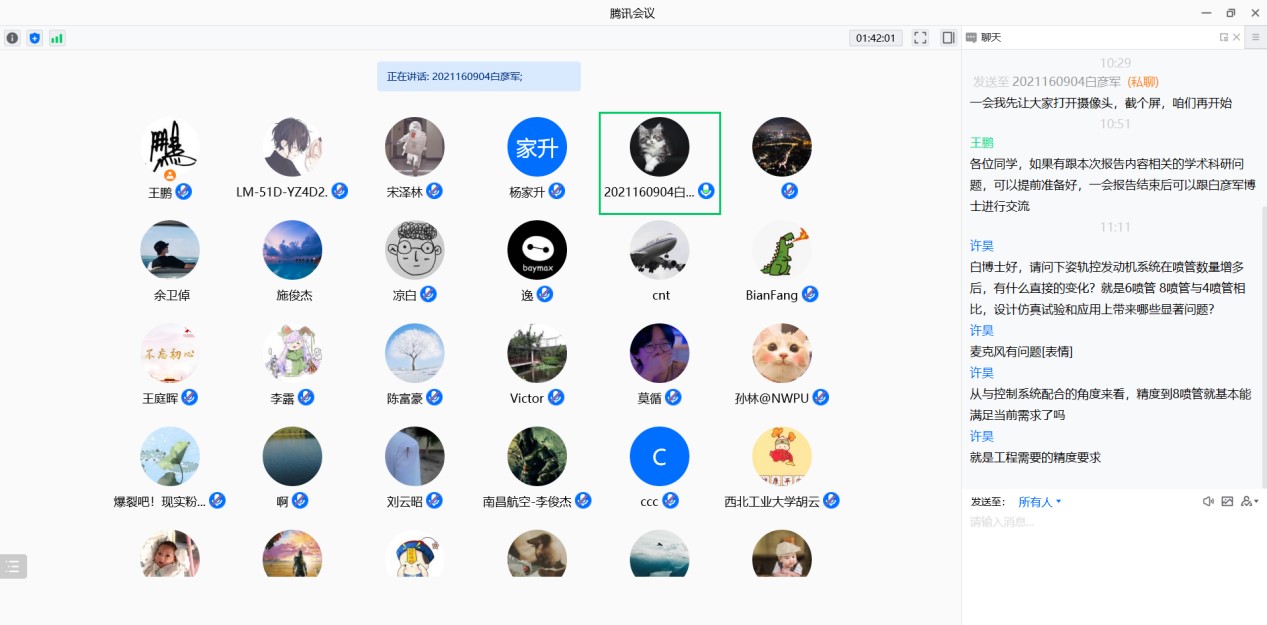 在接下来的三天时间里,9位工程博士依次做了学术报告,累计有300多位师生参加了本期飞天学术讲堂。学术报告会内容涵盖航宇、控制、兵器等多个学科领域,各报告人结合当前国内外的技术最新发展状况、取得的研究成果、当前存在的问题以及未来发展趋势等多个方面进行了分享。每场报告会结束后,参会师生与报告人就相关学术科研问题进行了交流探讨。