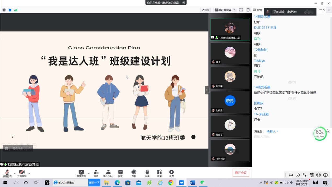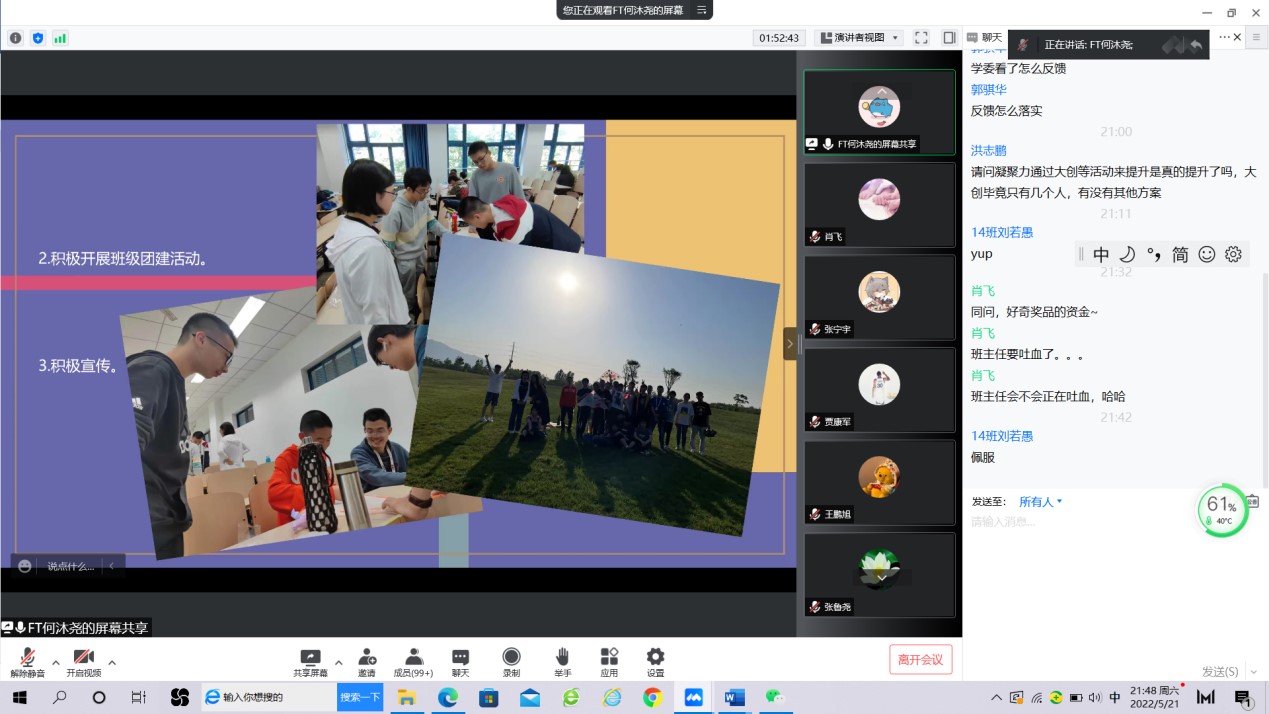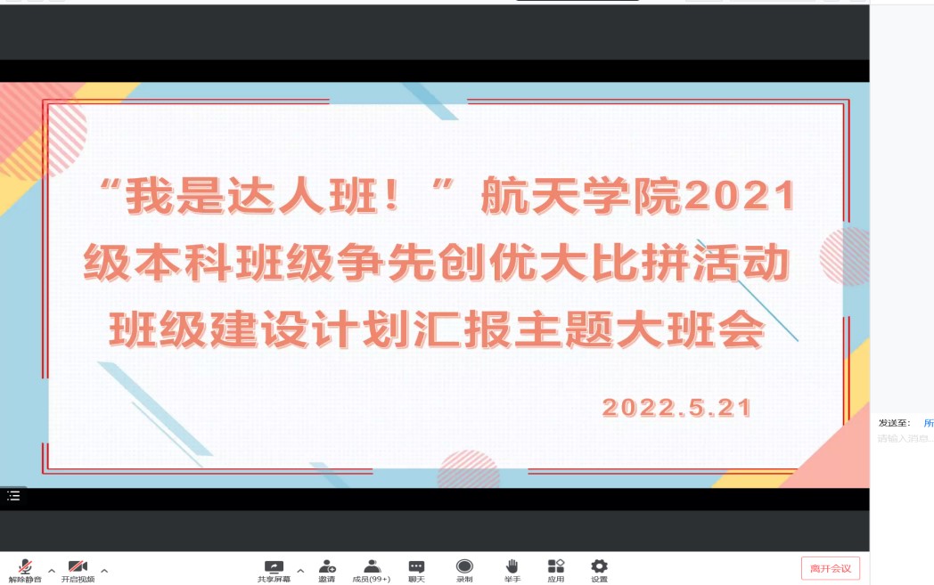 在线召开了本科2021级主题大班会,开展“我是达人班”班级争先创优大比拼活动,参会成员有艳照门
