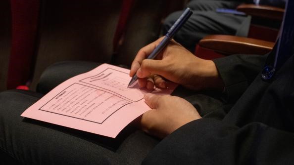 大会第一项,奏唱国歌。参会代表全体起立,高唱国歌。