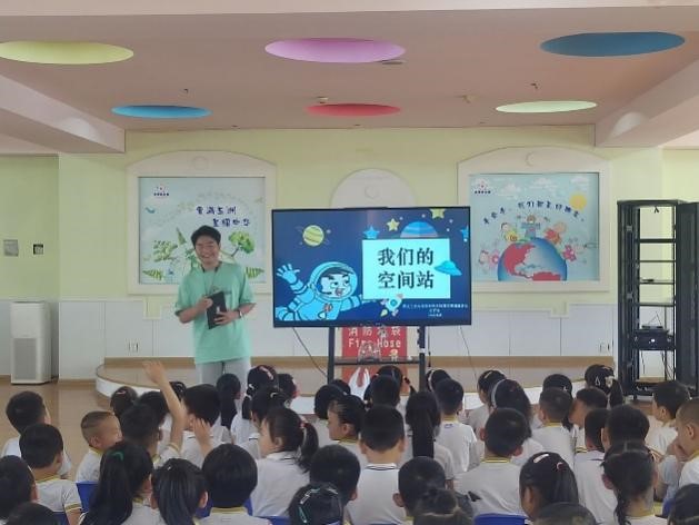 航天科普志愿者服务队的汪子弦、唐行健、沈建晶三名同学在肖飞老师的带领下前往西安市雁塔区五星幼儿园给即将升入小学的大班小朋友们进行了一次精彩的航天科普演示。