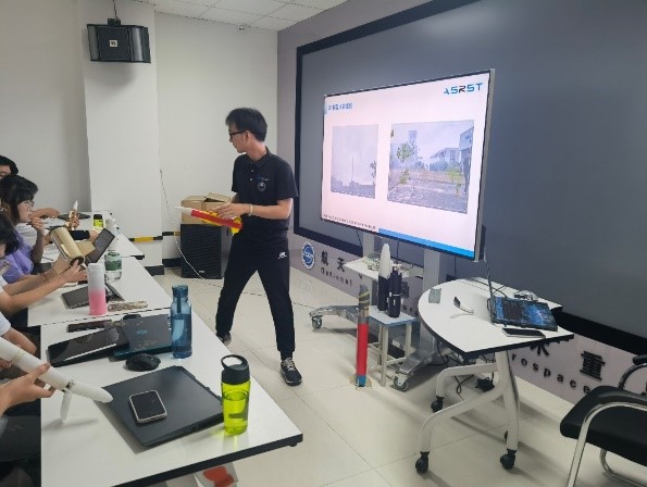 俱乐部教员在开幕式后为全体学员开展了安全培训。此次暑期学校时间为6月27日至7月5日,共有校内外学员60名,其中6名学员为我校留学生。中外学员混编为10个小组,工作语言为汉语及英语,活动结束之前,每组需以团队协作形式研制火箭一枚,并完成发射试验。活动期间还邀请了国际空间大学孙功凌教授开设线上讲座。