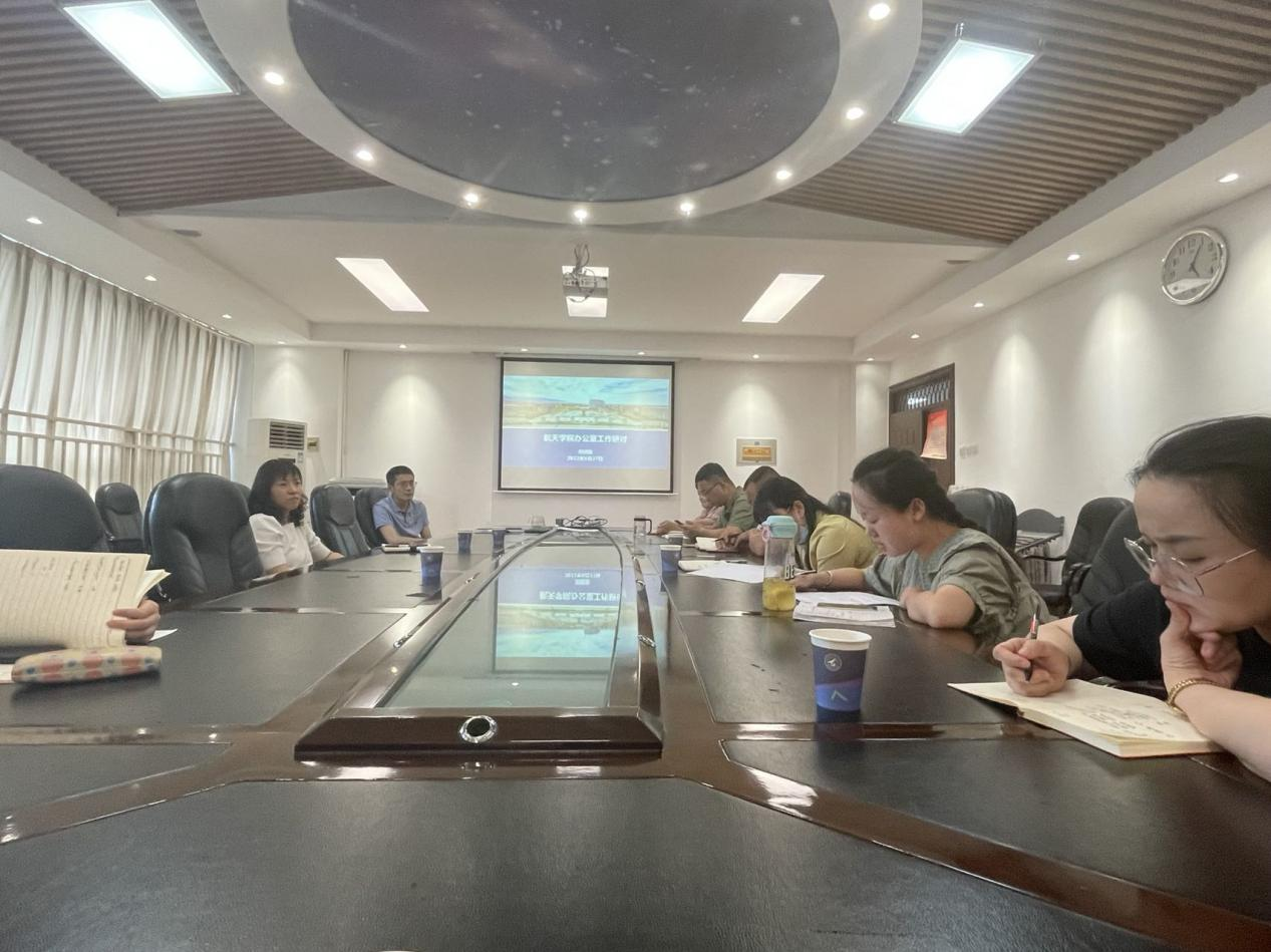 组织召开了院办公室专题培训暨暑假工作研讨会,党委副书记(主持工作)黄越、学校办公室李元晟、院长助理王鹏及院办全体工作人员参加了会议,会议由办公室主任刘晓强主持。