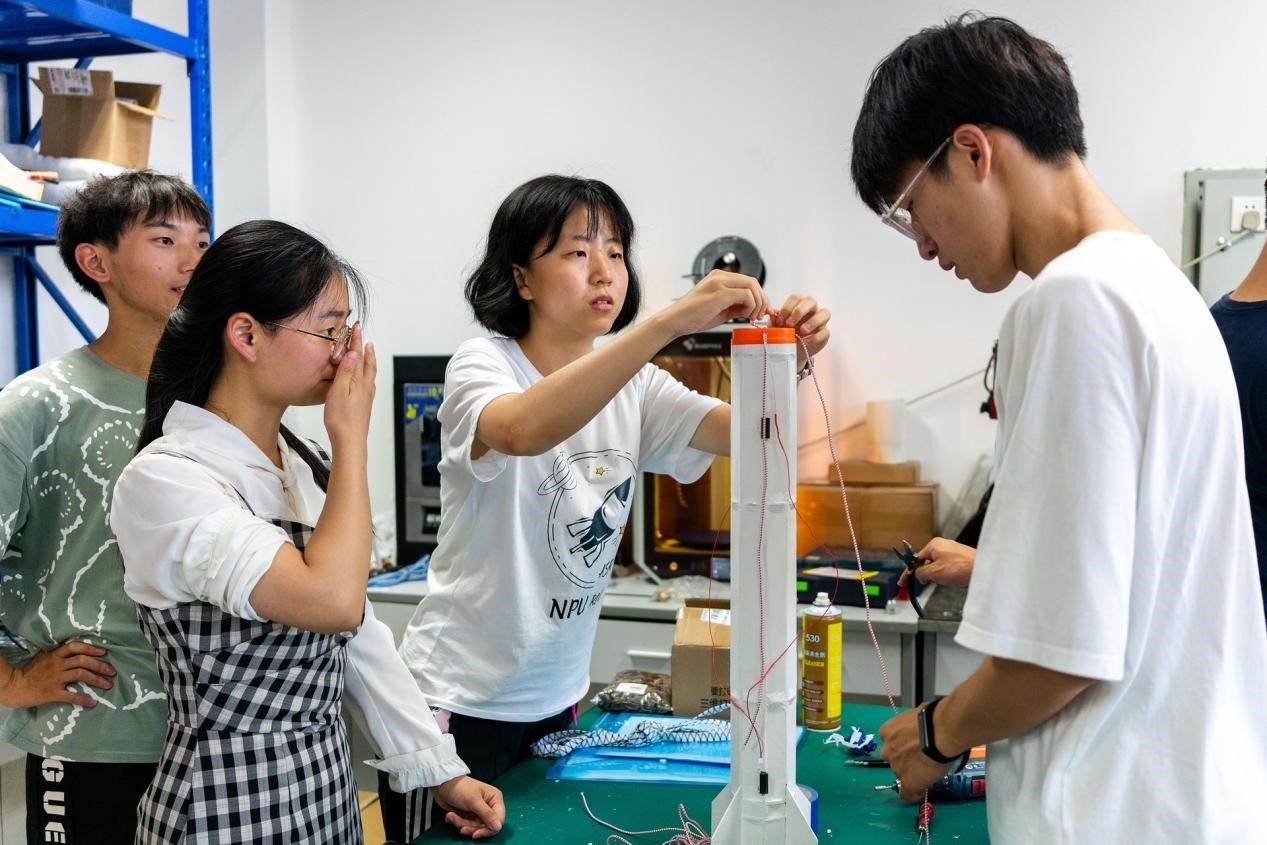 在讲座之外,学员们被分为10个小组,每个小组需在有限的时间内分工设计和制作自己的小火箭。从总体设计、气动分析,到头锥打印、航电调试,尽管在具体制作过程中遇到了许多困难,但在学长的指导以及组员们的通力协作下,在反复计算、试验与改进后,各小组均出色地完成了火箭设计制作的团队项目。