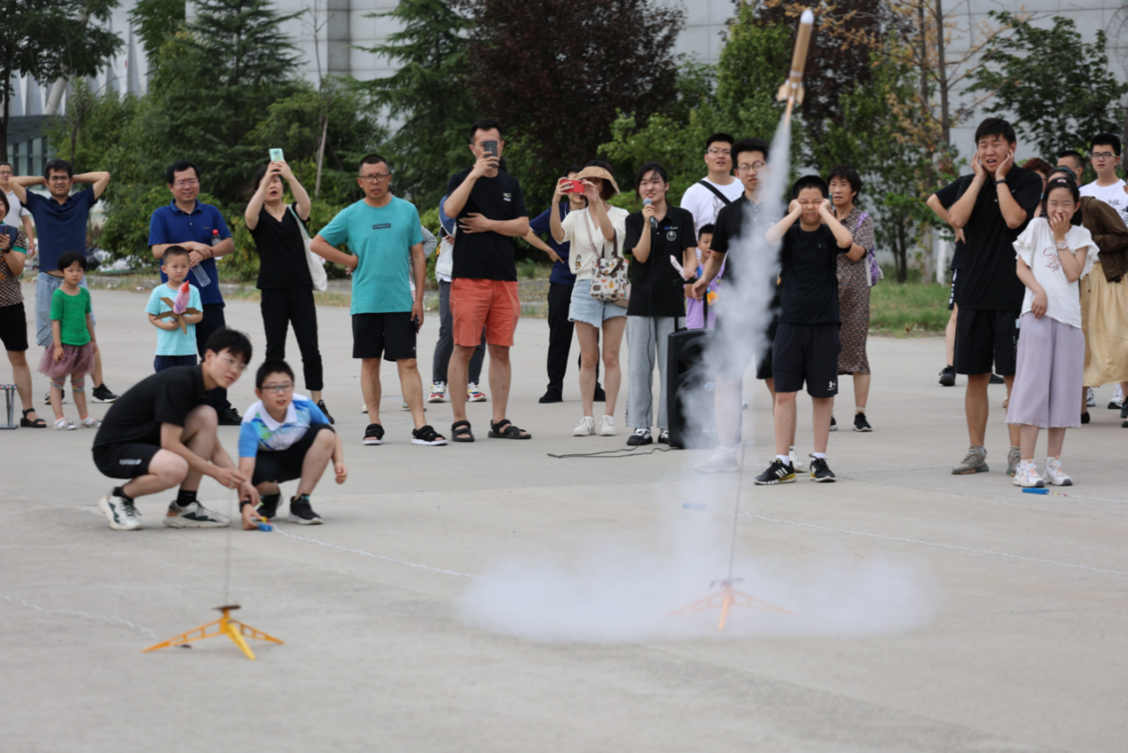 航天科普研究中心还面向我校教职工子弟举办了“航小天火箭培训班”,讲授火箭基础知识,并辅导中小学生制作模型火箭,通过放飞自己的小火箭,孩子们心中埋下了一颗颗航天梦的种子。