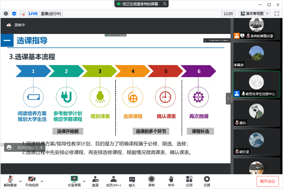 会议第二项由学生注册中心魏颖老师为同学们进行选课指导。魏老师从为什么选课、怎么选课、选什么课三个方面为2022级同学生动地讲解了选课流程、选课技巧以及合理安排课程,提醒同学们提前做好课程规划。同时针对同学们提出的问题进行了实时解答。