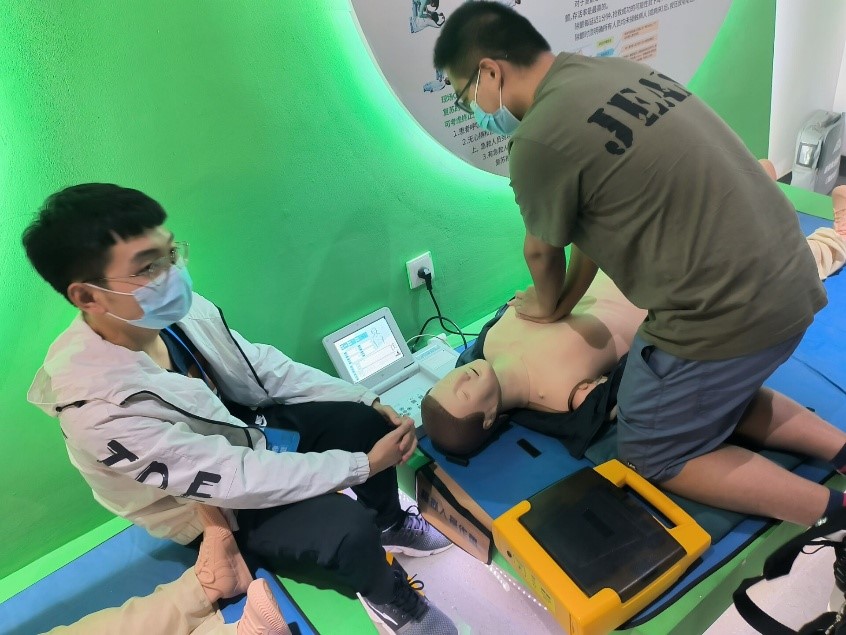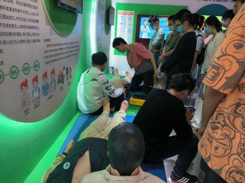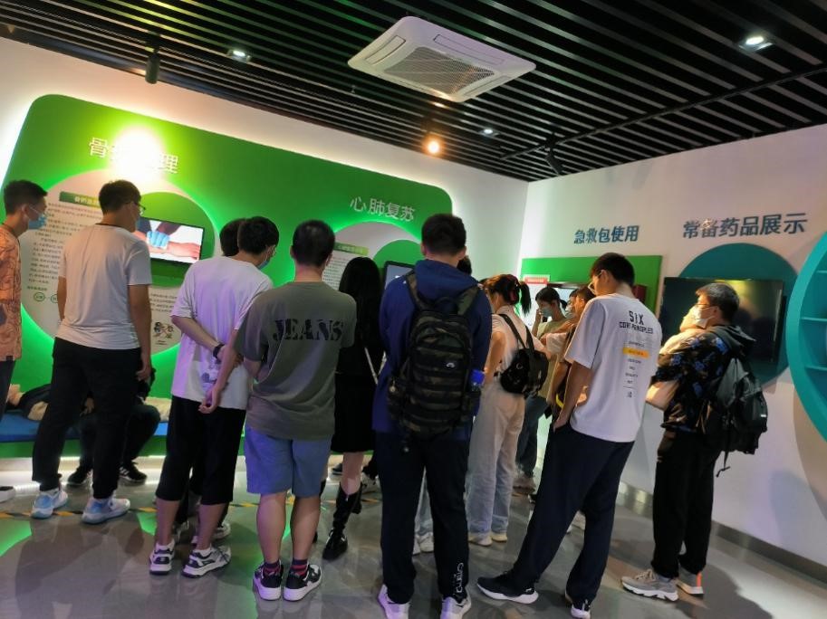 同学们依次参观了安全教育体验馆的自然灾害、消防安全、校园安全、卫生健康、交通安全五个展区,通过模拟设施亲身体验了地震震感、倾斜房屋、跨步电压、灭火器使用、海姆利克急救法、CPR急救法等,亲自参与了报警训练、结绳训练、溺水自救、电梯坠落自救等。
