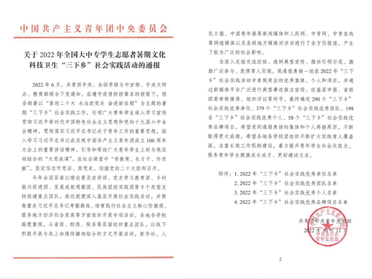 近日,2022年全国大中专学生志愿者暑期文化科技卫生“三下乡”社会实践活动通报结果揭晓,艳照门
