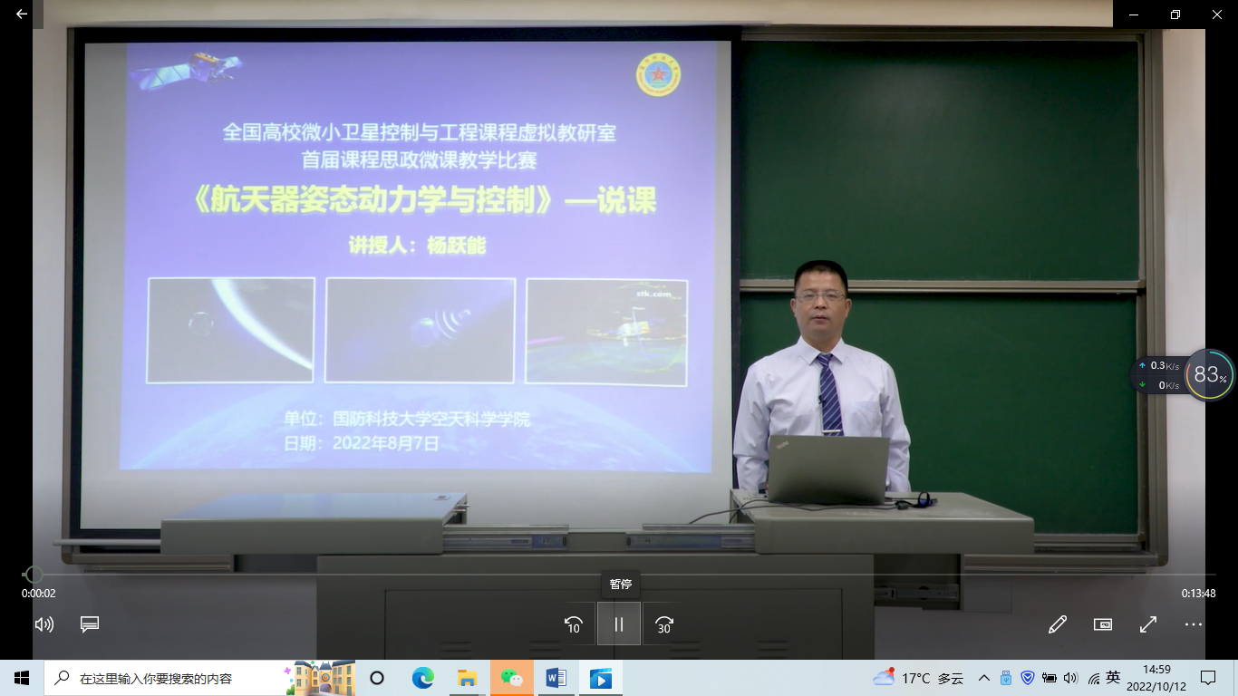 教育部微小卫星控制与工程课程虚拟教研室成功举办了首届课程思政微课教学比赛。