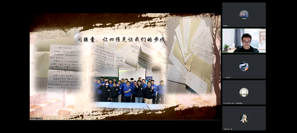 一张白纸写下参差不齐的字体,内容显得幼稚,可每一个理想便从这里开始。没有天真的幻想,又怎来无限的可能?9班的时间胶囊,让四维见证他们的步伐。