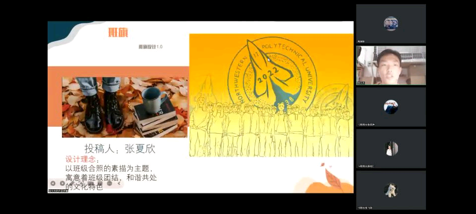 17班班旗:“以班级合照的素描为主题,寓意着班级团结和谐共处的文化特色”