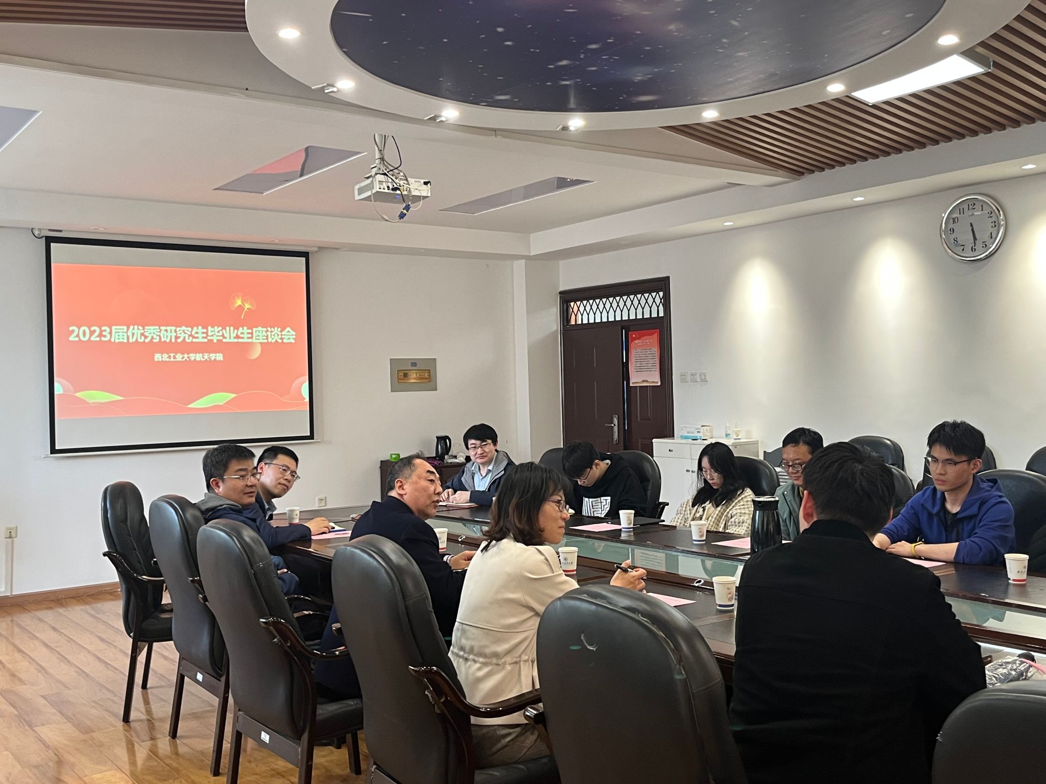 岳晓奎院长在座谈过程中与发言同学多次互动交流,认真听取了每位同学的发言,他对同学们心系学校发展提出的意见和建议表示感谢。黄越书记向完成学业、顺利毕业的同学们表示祝贺,并提出了三点期望:一是希望同学们传承航天精神,勇担报国使命,以小我融入大我,为国防事业贡献自己的一份力量;二是希望同学们能够在将来的工作和深造中锤炼本领,全力以赴,脚踏实地地闯出自己的新成就;三是希望各位毕业生作为最年轻的校友,今后持续关注和支持母校、母院的发展,发扬工大品格,成为母校的骄傲。最后,岳晓奎院长再次表达了对毕业生的祝福,祝贺大家进入新的人生篇章,希望大家能够尽快融入单位,成为栋梁之材,为实现中华民族伟大复兴的中国梦贡献自己的一份力量。