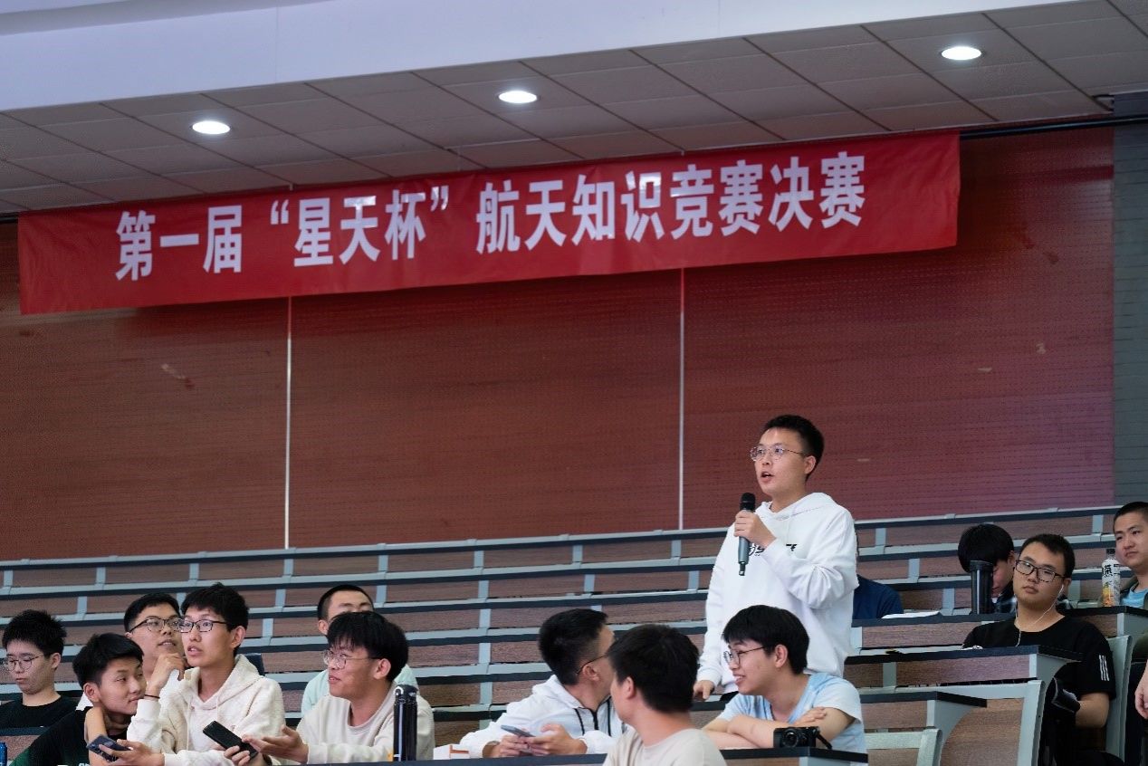 2023年4月16日下午,经过紧密筹备,第一届“星天杯”航天知识竞赛决赛开赛。经过初赛和复赛激烈角逐,脱颖而出的6支队伍向最后的冠军发起冲击。他们分别是“大智若愚队”“绝不归零队”“星辰大海队”“铸剑揽星辰队”“锐意进取三人队”和“逐梦蔚蓝队”。