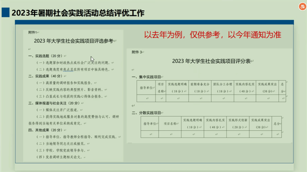 接着,会议分享了往届社会实践的精彩瞬间,鼓励同学们从中学习实践经验,创新实践思路,积极参与到社会实践中。