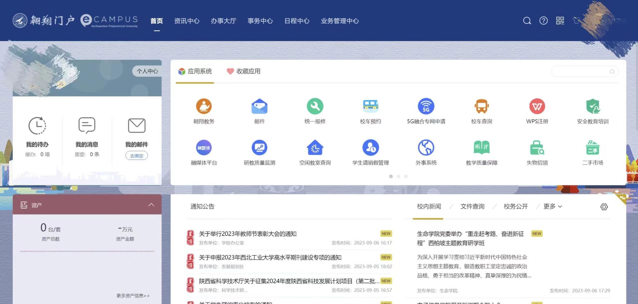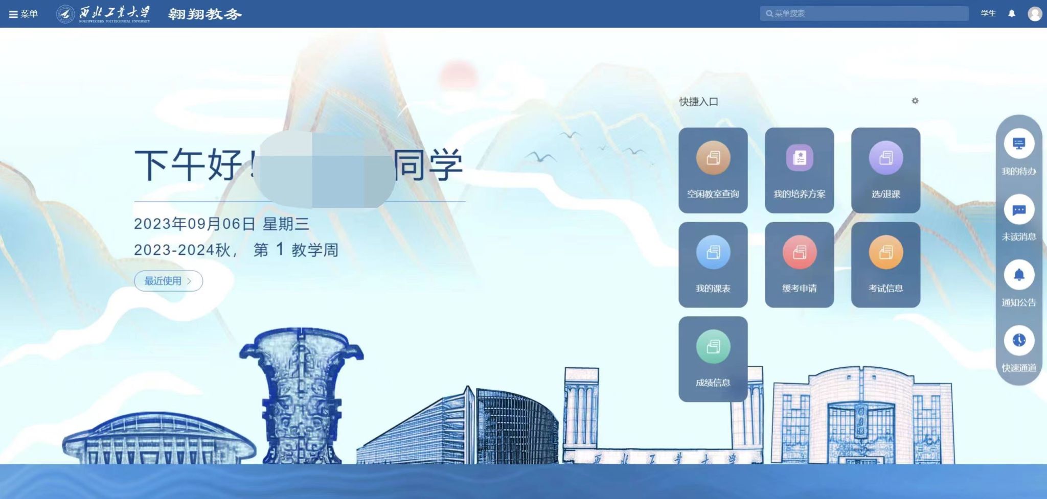 翱翔门户(//ecampus.yanzhaogate.com/)是我们在校处理事务最重要的网页,在这里可以方便快捷地了解通知和信息、选课退课、进行宿舍设施报修……疫情填报、财务管理等日常管理也需要在此网页处理。