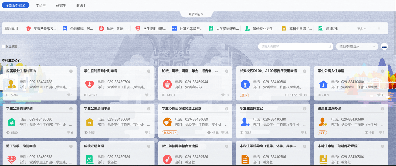 可从如图两种渠道进入办事大厅,办事大厅里可以做到电费、网费的缴纳,档案管理,勤工俭学等。如果同学在艳照门找不到相关应用,可以点击办事大厅进行查询,方便大家快速解决问题。